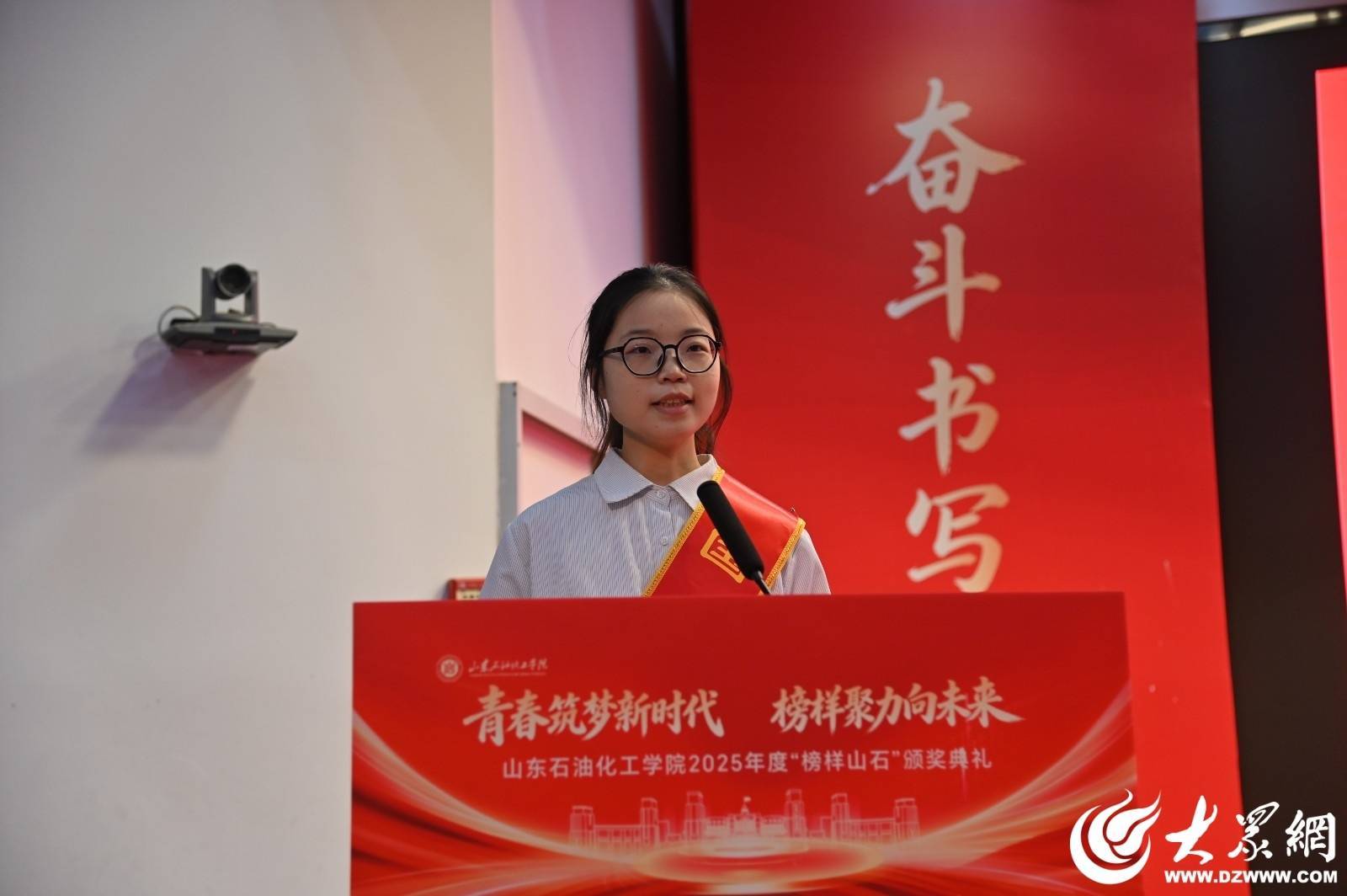 在青年榜样分享环节,国家奖学金获奖代表、信息科学与工程学院2022级学生仲月,优秀学生干部标兵代表、教育与艺术学院2022级学生周嘉伟,校长奖学金获奖代表、化学工程学院2022级学生崔凤云,企业奖学金获奖代表、石油工程学院2023级学生董庆帅依次进行发言。