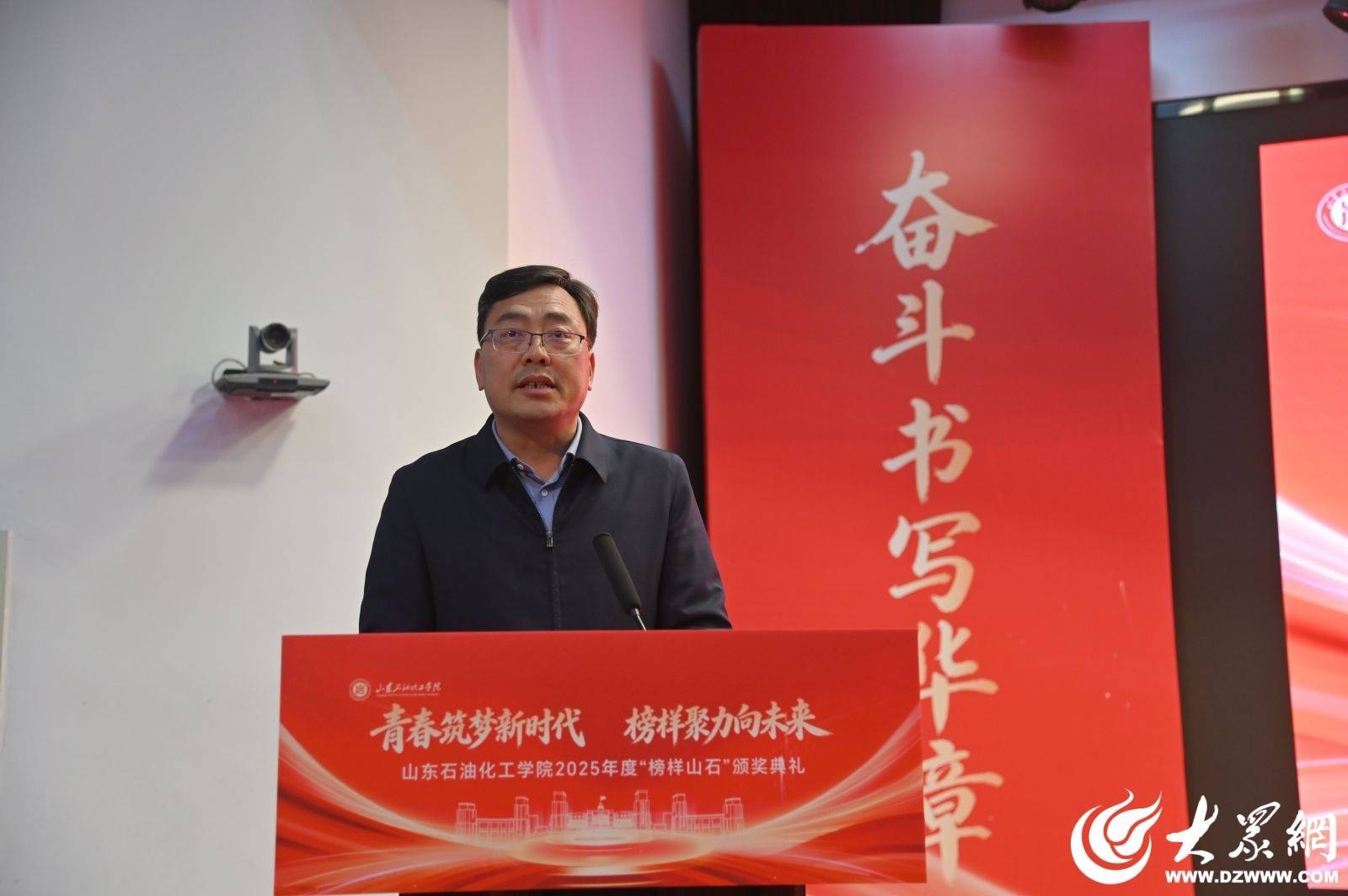3月31日下午,“青春筑梦新时代 榜样聚力向未来”山东石油化工学院2025年度“榜样山石”颁奖典礼顺利举行。山东石油化工学院党委副书记、校长冯其红出席典礼并讲话。山东石油学会副理事长、秘书长毕义泉,办公室主任李海阳,山东胜利建设监理股份有限公司党委副书记、副总经理、总工程师吕涛作为设奖单位嘉宾应邀出席。山东石油化工学院党委副书记马洪军主持典礼。