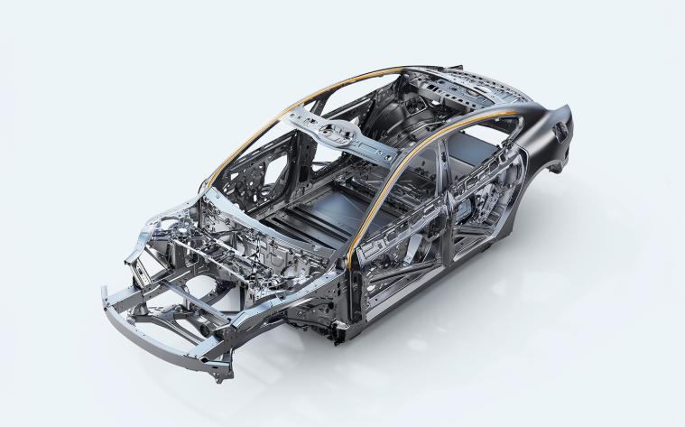车身的话,上一代是最高 2000MPa 钢,配备 7 和气囊;