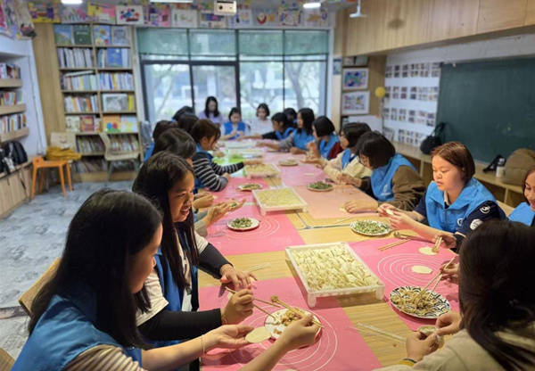 除城市景观参访外,春令营还设置了文化交流与实践体验环节。在“中泰礼仪文化比较”课堂上,师生围绕日常问候、餐桌礼仪、社交习惯等话题展开交流,通过情景模拟与互动讨论,加深对彼此文化传统的理解。在实践教室内,营员们还参与了包饺子与书法体验,在动手操作中感受中华传统文化的魅力。
